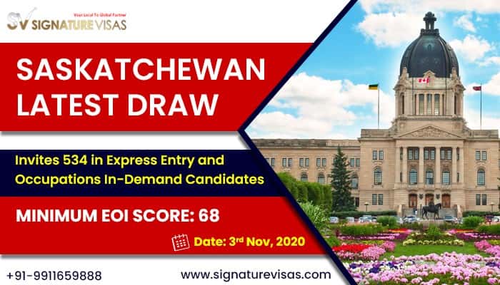 Saskatchewan province announced the latest draw on 3rd November and selected 534 applicants in Express Entry and Occupations In-Demand sub-categories.